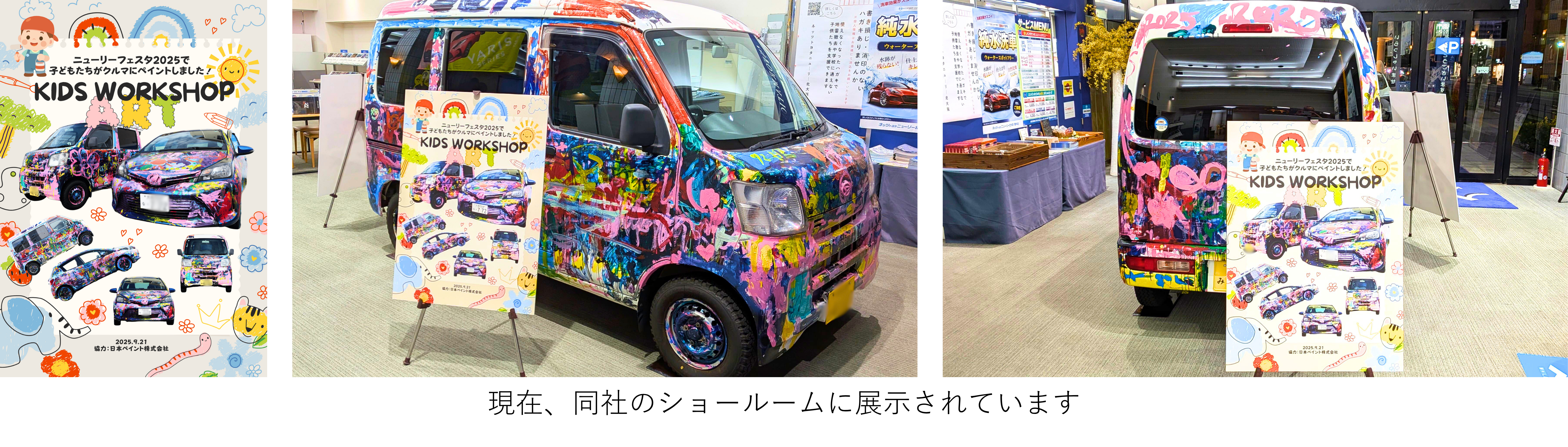 参加者からは「とても楽しかった」というお声をいただき、保護者の方もお子様の笑顔を写真に収めながら一緒に楽しんでいる様子でした。同社からは「ペイントしていただいた車は廃車にするにはもったいなく、ポスターを作りショールームに展示させていただいています。笑顔あふれるコンテンツで、ぜひまた機会があればご協力いただきたいです」とコメントをいただきました。