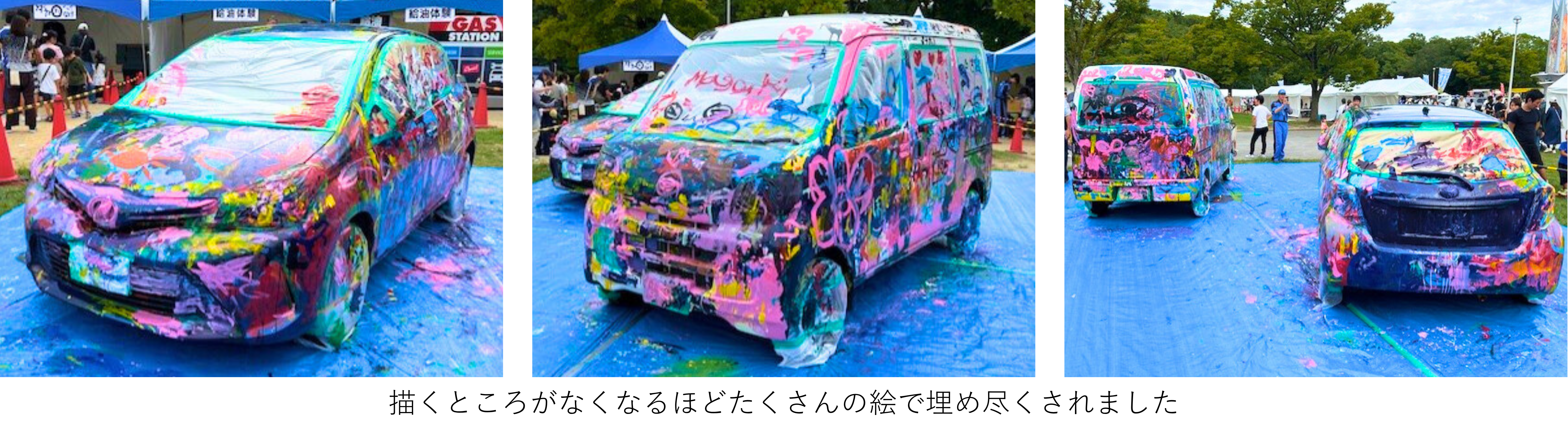 最後にはまっさらだった自動車が、描くところがなくなるほどたくさんの絵で埋め尽くされ、とてもカラフルになりました。