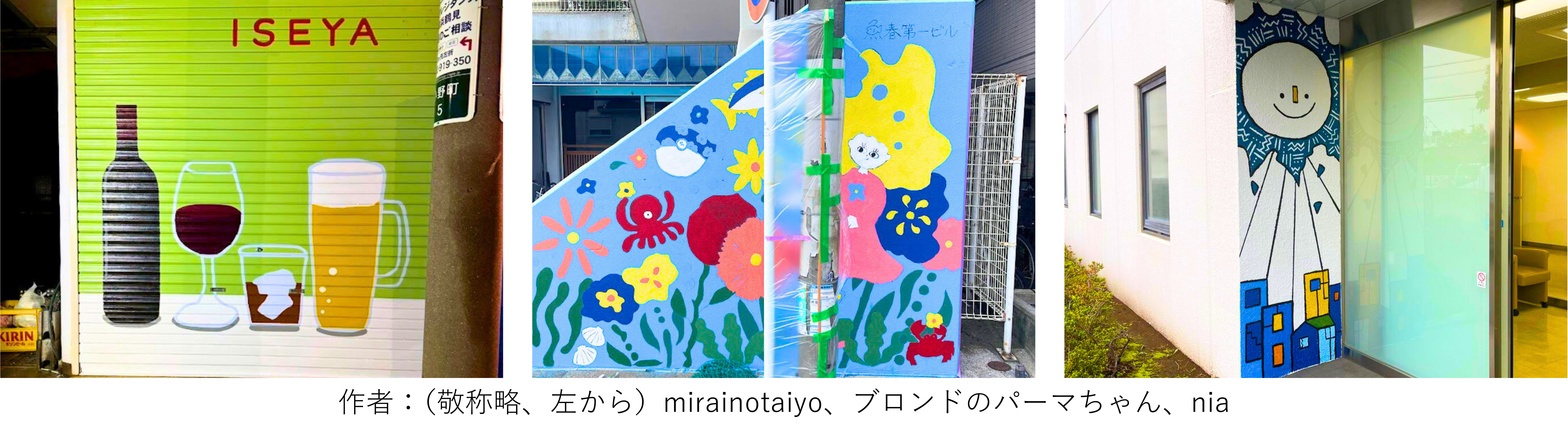 鶴見パブリックアートプロジェクトで制作した壁画は、昨年分も含めて現在合計30箇所となり、鶴見小野町を盛り上げるとともに、通行人の目を楽しませています。