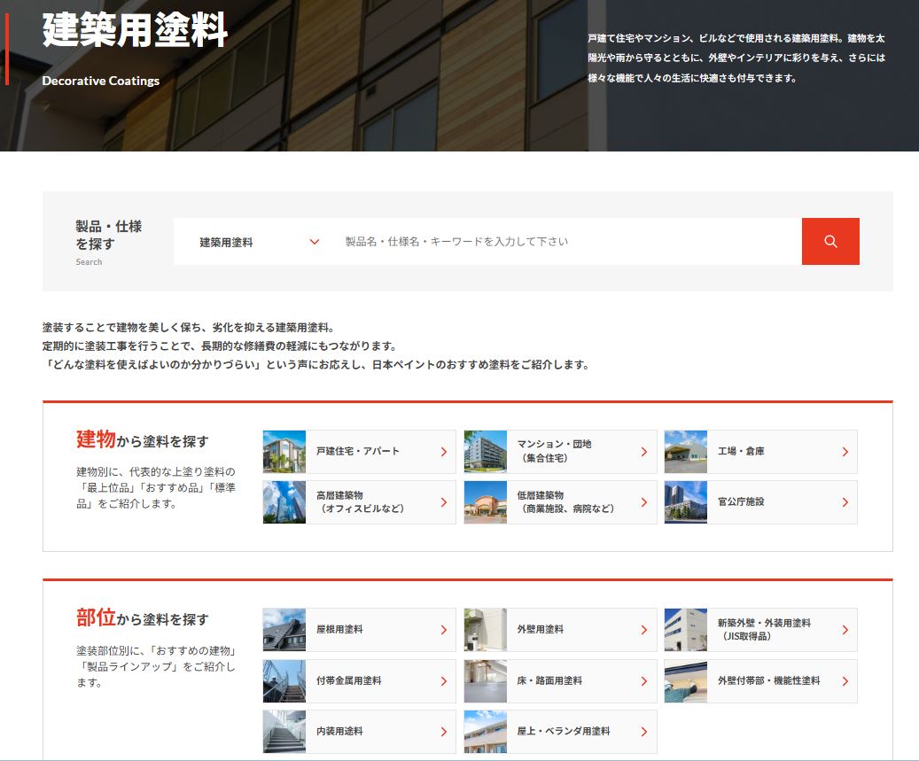 日本ペイント株式会社(本社:東京都品川区、社長:榎本 朋夫、以下、当社)は2026年1月5日(月)、製品ラインアップがわかりやすく、目的の製品を見つけやすいウェブサイトを実現するため、当社ウェブサイト内の「建築用塗料ページ」(以下、本ページ)をリニューアルしましたのでお知らせいたします(以下、本リニューアル)。