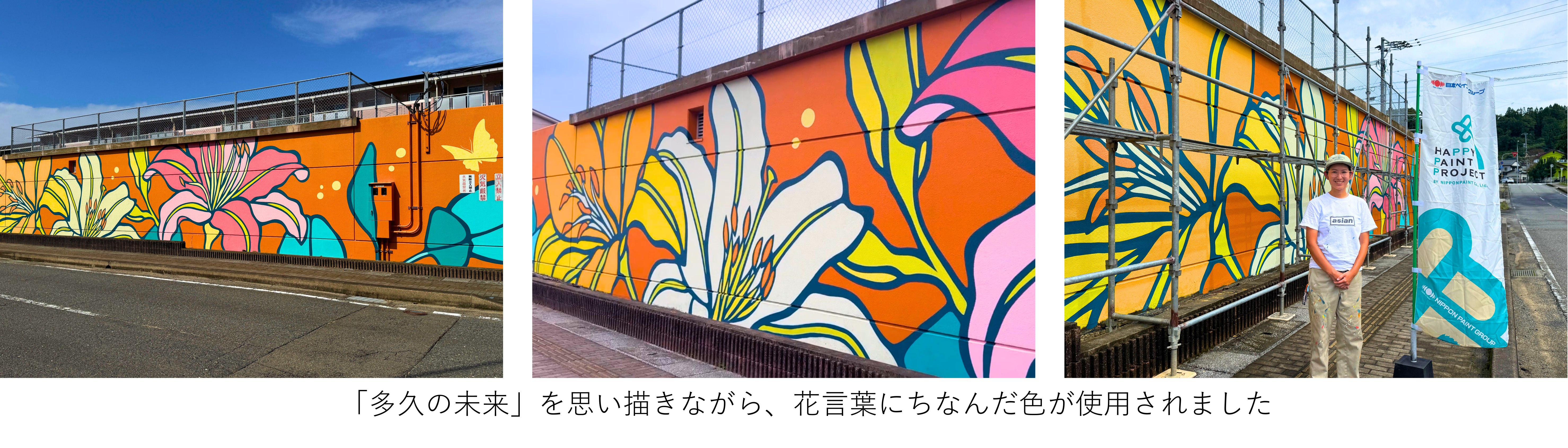 日本ペイント株式会社(本社:東京都品川区、社長:榎本朋夫)は、塗料を通じて世の中に幸せをお届けする「HAPPY PAINT PROJECT」の一環として、2024年9月より佐賀県で実施されている「多久市ウォールアートプロジェクト」(以下、本プロジェクト)での壁画制作に塗料協力を行っています。