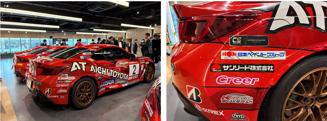 日本ペイント株式会社(本社:東京都品川区、以下、当社)は、当社グループ会社のサンリード株式会社とともに、愛知トヨタ(以下、当グループ)のレーシングチーム「K-one Racing Team(ケイワンレーシングチーム)」(以下、本チーム)とのスポンサー契約を更新いたしました。 本チームとは、2024年4月よりスポンサー契約を結んでおり、本年は4台のレーシングカーに当社と当社グループ会社のロゴマークが掲載されております。