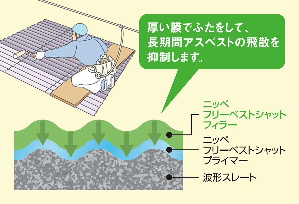 アスベスト含有スレート(無塗装品)高圧水洗不要改修システム